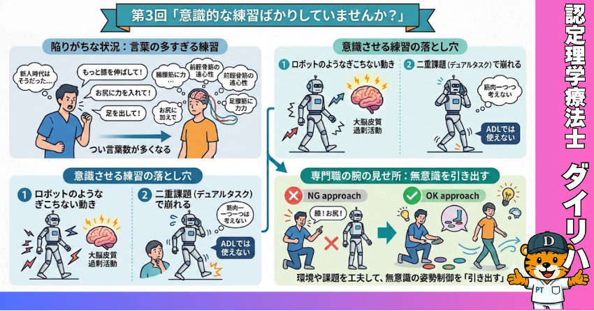 言葉で意識させるのではなく、環境や課題を工夫して、無意識の姿勢制御を「引き出す」。これが専門職の腕の見せ所なんですね。