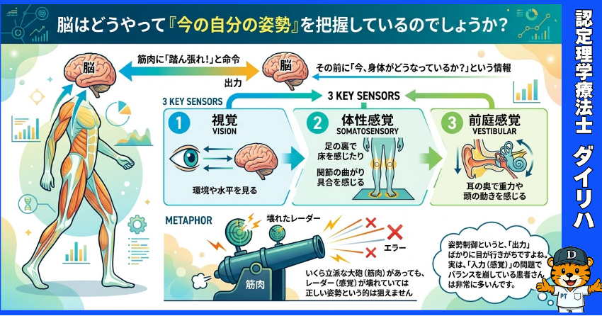 姿勢制御というと、どうしても筋力や運動麻痺といった「出力」ばかりに目が行きがちですよね。正直、僕も新人の頃は「力が入っていないから倒れるんだ」とばかり思っていました。