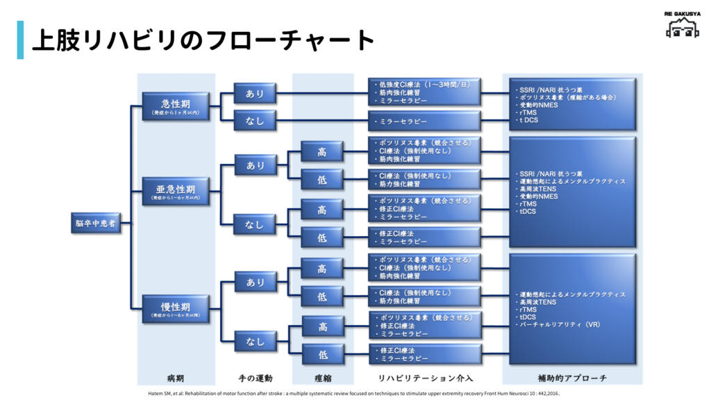 Hatem SM, et al: Rehabilitation of motor function after stroke : a multiple systematic review focused on techniques to stimulate upper extremity recovery Front Hum Neurosci 10 : 442,2016.