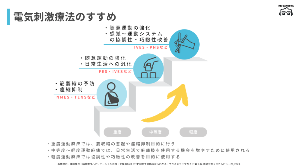高橋忠志,栗田慎也:脳卒中リハビリテーション治療・支援のFirst STEP 初めての臨床からわかる・できるステップガイド.第1版. 株式会社メジカルビュー社, 2023.