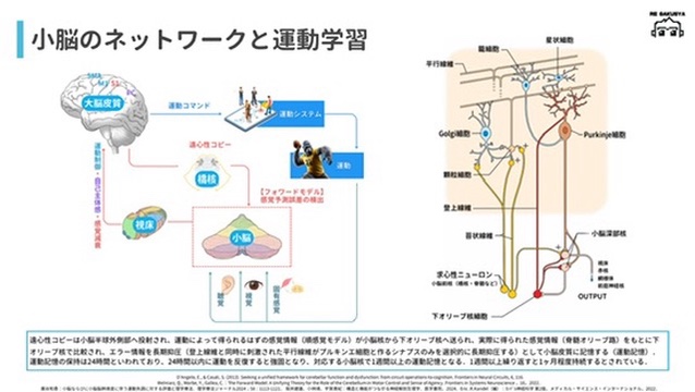 大脳から送られた運動の指令と、実際に身体から返ってくる感覚情報を比較し、その「ズレ」を計算しています。